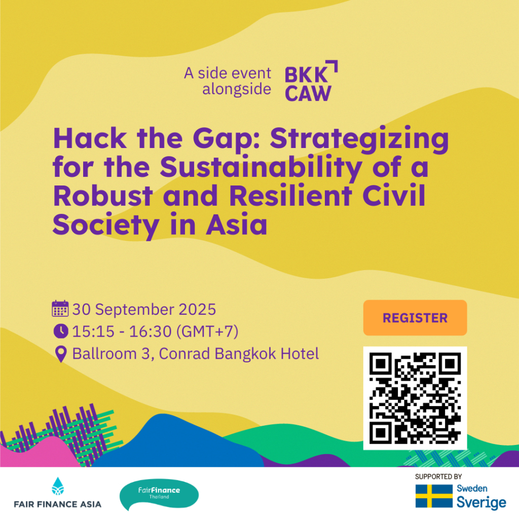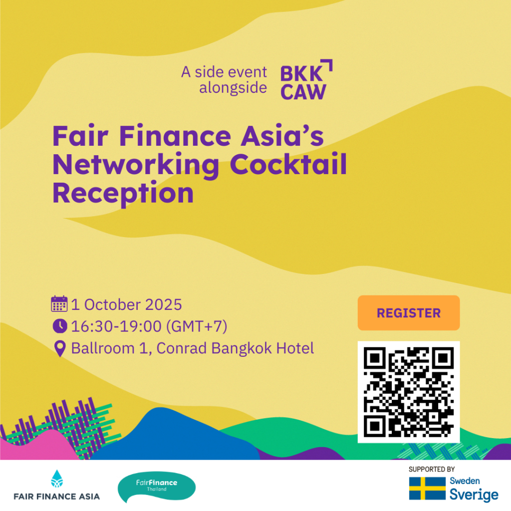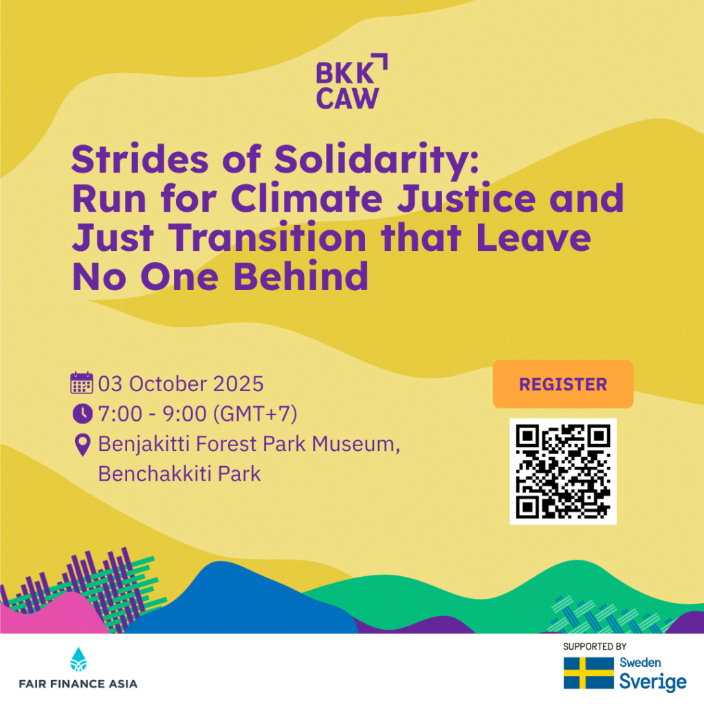 Fair Finance Asia (FFA) and Fair Finance Thailand (FFT) will conduct a series of multi-stakeholder discussions as part of the first-ever Bangkok Climate Action Week (BKKCAW) from Tuesday, September 30, to Friday, October 4.